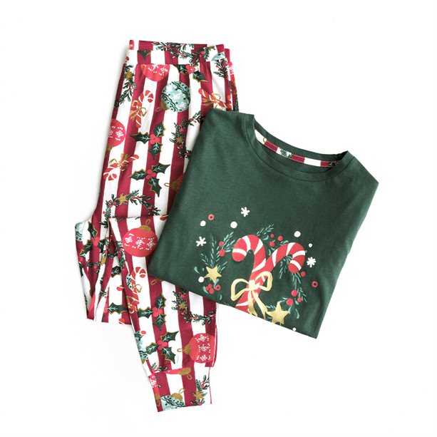 Crafted from 100% cotton, these comfortable pyjamas feature a long-sleeve top and cuff-leg joggers adorned with a classic yuletide print, making them a delightful addition to any festive wardrobe. Perfectly unisex, they cater to the individual styles of youngsters aged 9-14, ensuring that every family member can join in on the fun while staying snug and stylish.