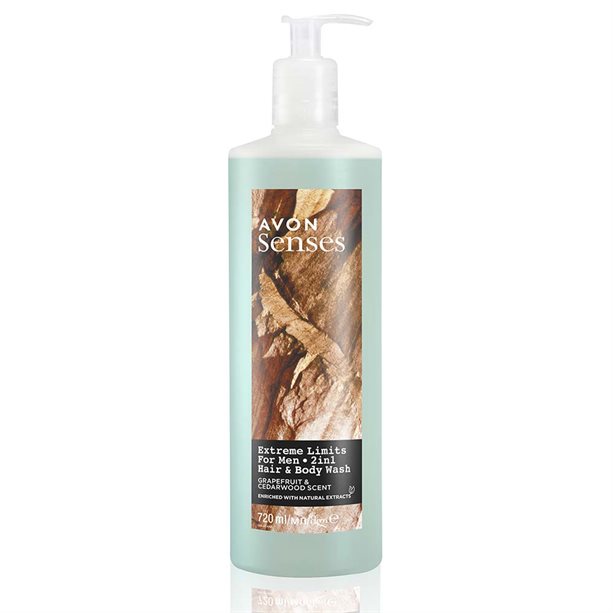 Step into a world of invigorating freshness with the Avon Senses Extreme Limits Hair & Body Wash. This generous 720ml bottle promises up to 72 washes, ensuring that the refreshing scent of grapefruit and cedarwood lasts even longer, turning your daily shower into an adventurous escape.